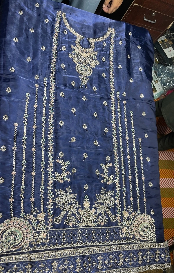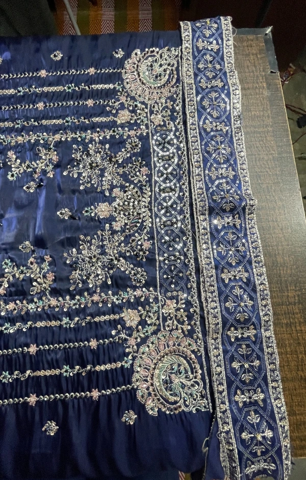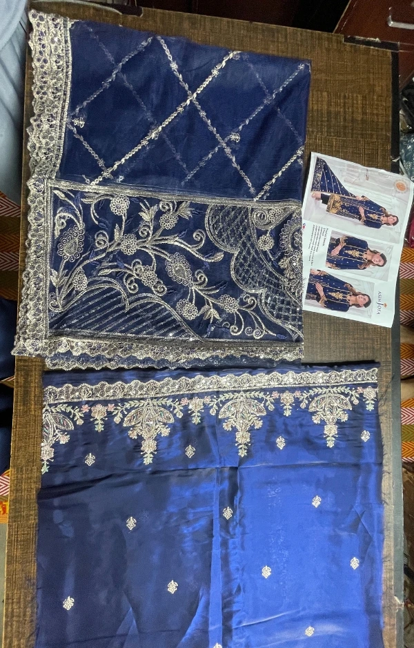 Asim Jofa FABRIC: Sheesha Silk COLOUR: Navy Blue DUPATTA: Breeza Net